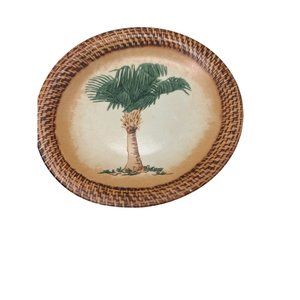 2 Tradewind Bay Plates Palm Trees Woven Look Edge Decorative Only 8.25"