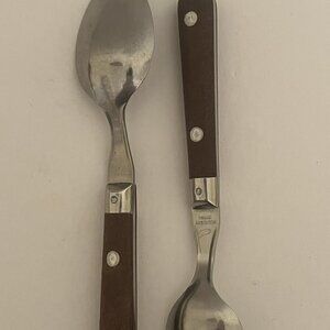 2 Teaspoons Washington Forge ? Mardi Gras? Stainless Brown Plastic Riveted Handle Korea