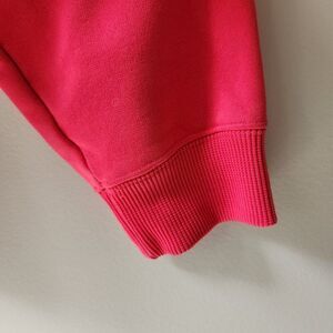 Hot pink hooded sweatshirt, regular fit, women's size small. Logo on breast. Solid stitching and hood lining.