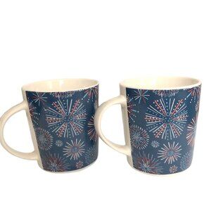 2 USA Fireworks Porcelain Mugs, 18 Oz.