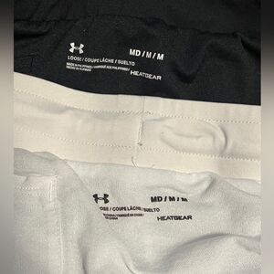 (2) Under Armour HeatGear Loose Running Shorts 3” Black White Medium M