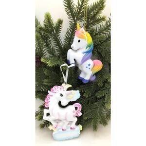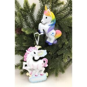 2 Unicorn Christmas Tree Ornaments- Rainbow Colors Gifts NEW