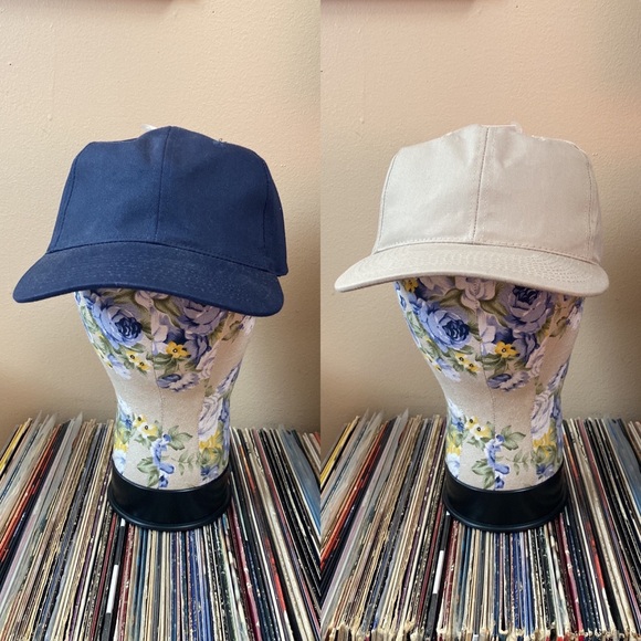 2 Unisex Classic Navy Blue + Tan Baseball Hats Cap NWT