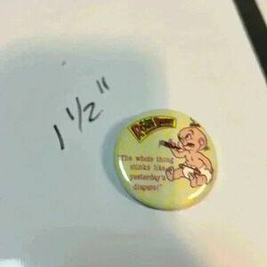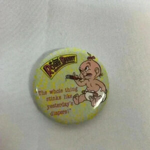 Two vintage "Roger Rabbit" round metal pins featuring Baby Herman and Jessica. Both in good condition. Measures approximately 1.5". (1987 Movie)