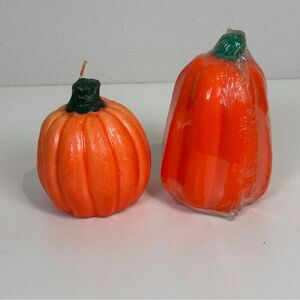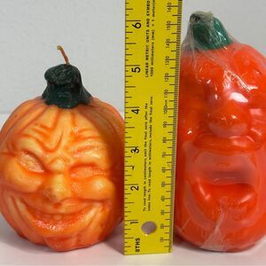 2 VTG Anthropomorphic Pumpkin Face Candles Halloween NIP
