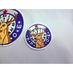 2 VTG BPOE Benevolent Order Of Elks Lodge Embroidered Jacket Vest Patch 5" & 3"