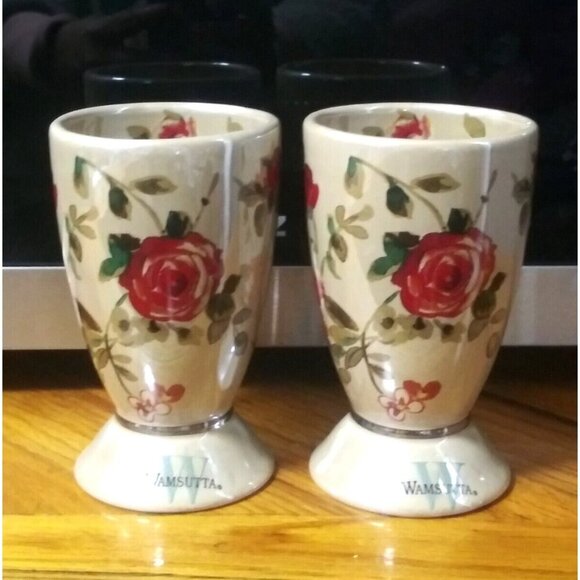 NWOT set of 2 VTG Lenox Wamsutta Springs Tumblers Bathroom Floral/Roses pattern glazed Ceramic taupe beige