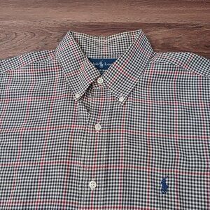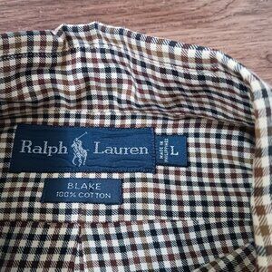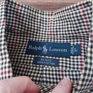 2 VTG POLO RALPH LAUREN “BLAKE” BUTTON DOWN COTTON TWILL SHIRT CHECK MENS L