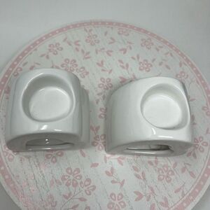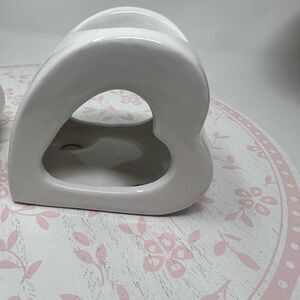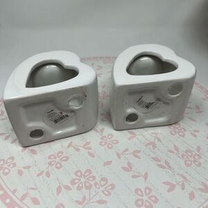 2 Valentine’s Galentine’s Day Heart Candle Holders White Ceramic NWT