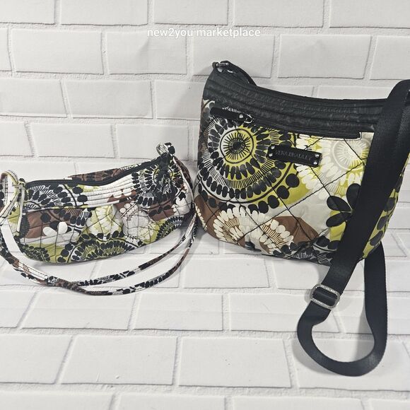 2 Vera Bradley Cocoa Moss Crossbody Shoulder Bag Floral Paisley w/ Frannie purse