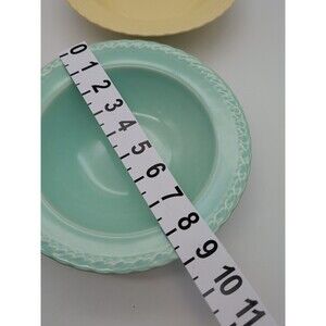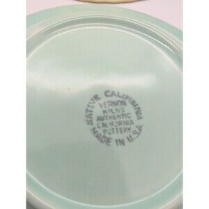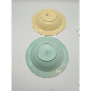 2 Vernon Kilns Native California Rimmed Soup Bowls Turquoise Yellow Pastel Vtg. Condition is Used. Shipped with USPS Ground Advantage.