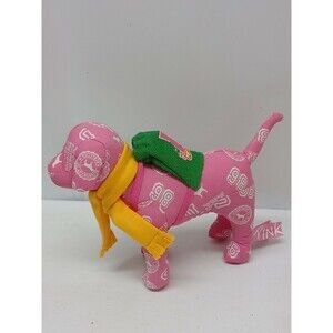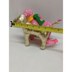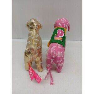 2 Victoria Secret Pink Mini Dog Stuffed Plush 7" Metallic Gold Phi Beta Pink