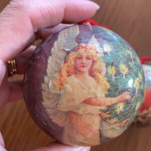 2 Victorian looking paper ball Christmas tree ornaments