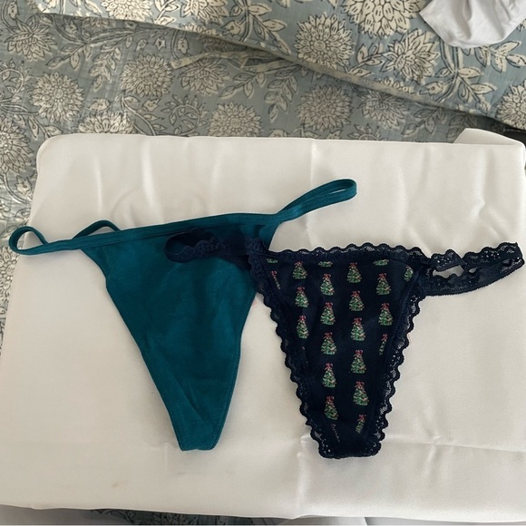 2 Victorias Secret VS NWT G V String Panty Teal Navy Blue Christmas Underwear S