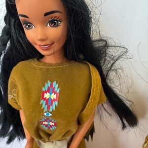 Two Native American Barbies from Mattel’s Dolls of the World Collection. Barbies show signs of display, and maybe missing some of their original outfits.