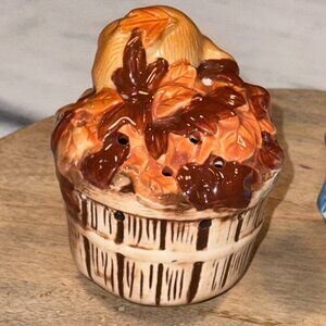 2 Vintage 1980's AVON Pomanders Kitten Cat and puppy dog in baskets. 2 1/4" tall x 3 1/4" across x 3 1/4" wide Kitten sleeping in basket and a 3 1/2" tall x 3" wide brown puppy in basket of leaves that are made of Ceramic porcelain. Both are in Excellent pre owned vintage condition with no chips, cracks or damage- great colors. Add your favorite scent or spices.