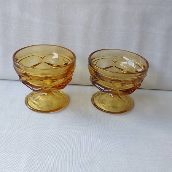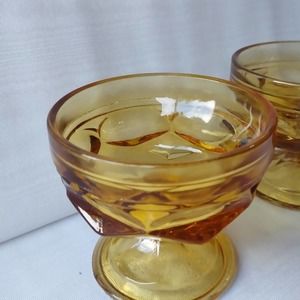 A set of Anchor Hocking Amber glass Sherbet/Ice cream Cups. They are both in great condition. No signs of chips or cracks. Measurements in pictures.