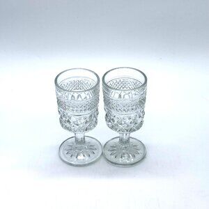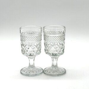 2 Vintage Anchor Hocking Wexford Diamond Cut Wine Water Goblets Glasses