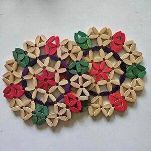 2 Vintage Beaded Wooden Trivet Hot Pad or Wall Hanging Boho Wood Bead 1970’s