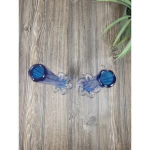2 Vintage Bud Vases Blue, Twisted Tube Stem, Elephant Base, Art Glass
