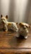 These vintage figurines stand ready for whatever comes their way with the standing figurine measuring approximately 4” tall and 4” long. The sitting dog measures approximately 3.5” tall and 4” long.