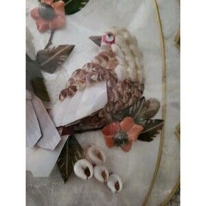 2 Vintage Capiz Shell Scalloped Seashell Art Birds Floral Phillipines Sealed GUC
