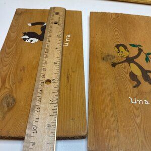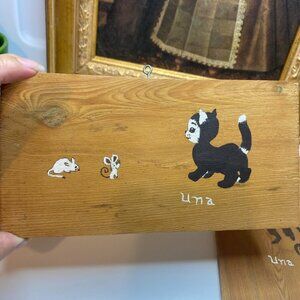 2 Vintage Cat And Mouse, Monkey Painting on Wood Hand Painted Signed