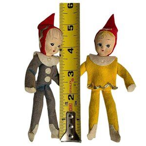 These vintage 50s-60s knee-hugger pixie elf dolls bring retro charm to any holiday display.