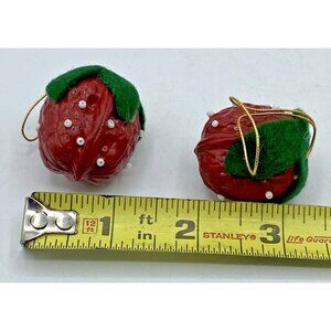 2 Vintage Christmas Tree Ornaments Handmade Strawberry Nut Shell Rustic Holiday In Very Good Pre-owned Condition. No chips or cracks. Some of the small white beads are missing. Please see the pictures