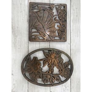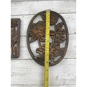 2 Vintage Copper and Cast Iron Floral Trivet Hot Dish Holders SET OF 2