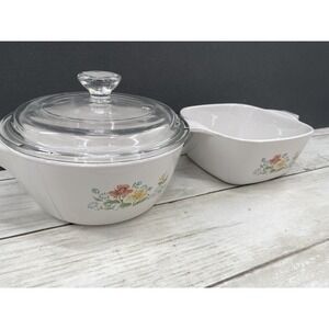 2 Vintage Corning Ware Dishes MEADOW Casserole P43B /Saucepan P89B W/LID