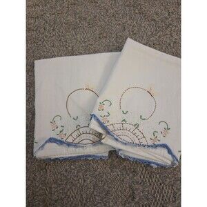 2 Vintage Cotton Pillowcases w Crochet Lace Embroidered Flower Farm House