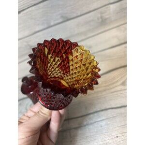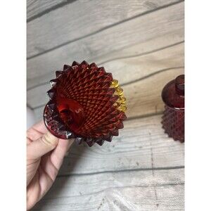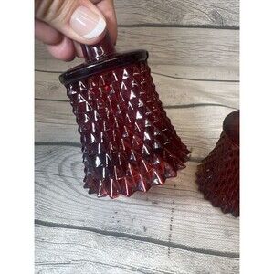 2 Vintage Diamond Cut Votive Candle Holders Peg Sconce Ruby Red Glass Read