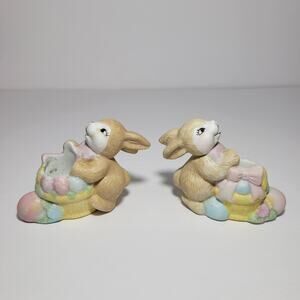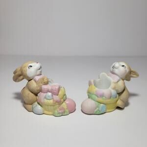 2 Vintage Easter Bunny Rabbits Ceramic Candle Holder Figurines Giftco Inc