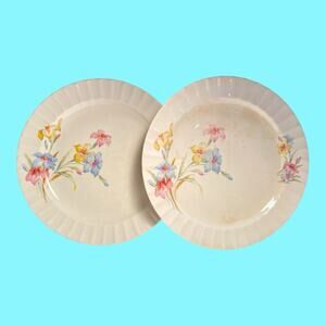 Set of two vintage Edwin Knowles China plates, likely a floral pattern known as “Spring Bouquet". Edwin Knowles China is a brand known for its semi-vitreous dinnerware produced in the USA, particularly popular in the mid-20th century.