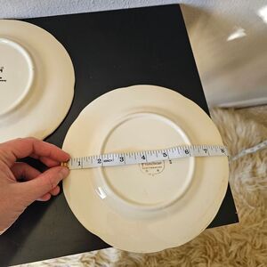 Great vintage plates! one is franciscan earthware and the other is franciscan dinnerware. one of the plates has some stains on the under side but not visible when used!