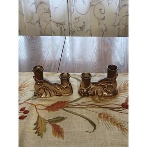 2 Vintage Frankoma Candle Holders 304 Double Candlesticks, Plainsman Brown