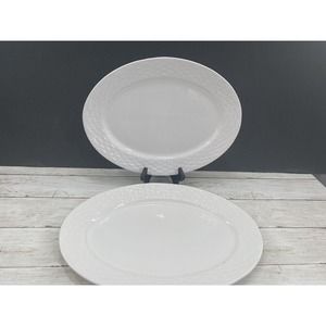 2 Vintage Gibson China Embossed Oval Serving Platters 14x10.5 and 14.75x10.5 LOT OF 2