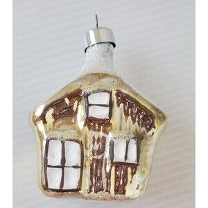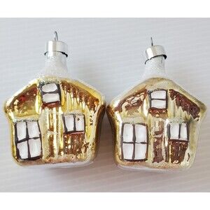 2 Vintage Glass Cabin Cottage House Christmas Ornaments Bradford Novelty Snowcap