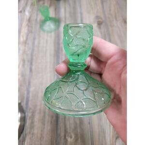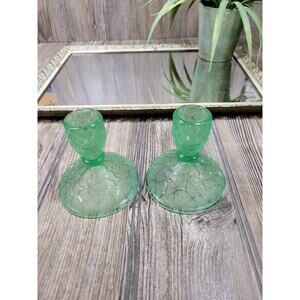 2 Vintage Green Imperial Crackle Candleholders, Uranium Glass