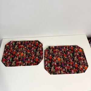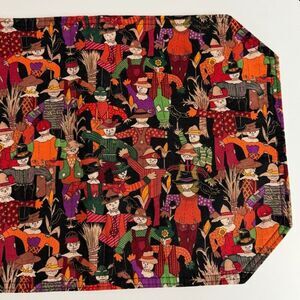 2 Vintage Handmade Scarecrow Fabric Halloween Autumn Placemats