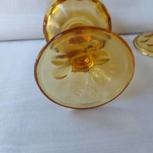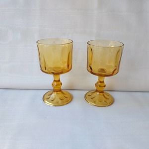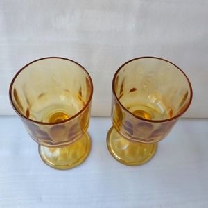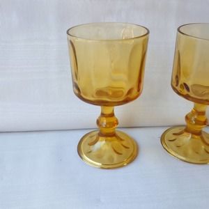 (2) Vintage Hazel Atlas El Dorado Amber Gold Wine Glass Goblets Thumbprint