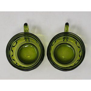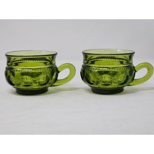 2 Vintage Indiana Glass Avocado Green Kings Crown Thumbprint Coffee/Tea Cups in good used condition no chips or cracks seen. Would make a great addition to any collection. Measurements in pics. Comes as pictured.
