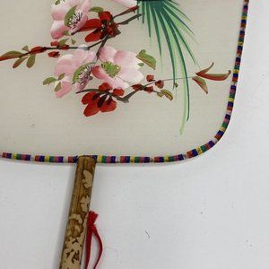 Beautiful silk paper paddle fans. Each fan is 12.5" long including handle. Gorgeous hand painted bird designs. Green