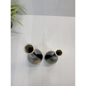 2 Vintage Japanese Chokin Etched Metal Bud Vases Pagoda Asian Decor