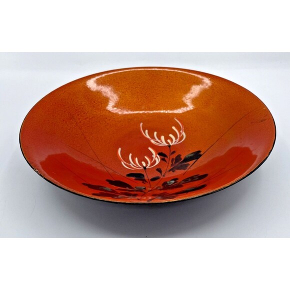 2 Vintage Japanese Orange Lacquer Ware Bowls 9" Shikki Sweets Bowl Hand Painted
