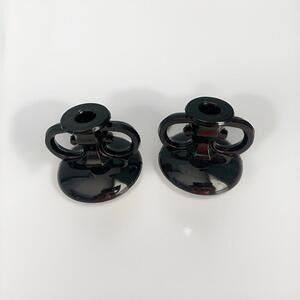 2 Vintage L.E. Smith Black Amethyst Glass Taper Candlestick Holders Halloween