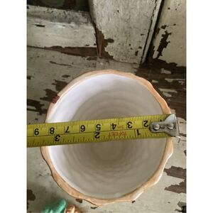 2 Vintage Lotus Ceramic Ice Cream Waffle Cones with Spoons Green Pink 6.5” T