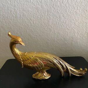 2 Vintage MCM Gold Gliding Peacocks Collectible Table Sculpture 13 1/4”& 8”H