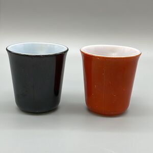 2 Vintage Milk Glass Mugs Corelle Orange & White Mug Pyrex Black & White Mug